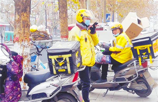 等訂單的外賣哥 記者 孫安平 攝