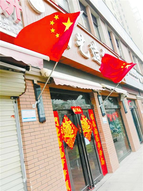 掛國旗貼門聯(lián) 記者 方珍 攝