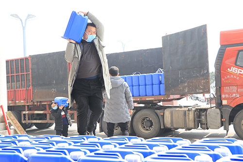 該公司總經(jīng)理馬媛媛介紹,她老家是周口的,在鄭州開辦的公司,公司業(yè)務主要是搞醫(yī)療物質(zhì)配送?!爱斍皣谰囊咔樾蝿菡娴米屓撕軗模瑸榱四軌蚪o家鄉(xiāng)提供一些力所能及的幫助,公司特意購置了這批醫(yī)用物質(zhì)以解家鄉(xiāng)防控疫情的燃眉之急?!瘪R媛媛介紹,為了能在市場上購到這批貨物,公司從除夕晚上就開始聯(lián)系貨物,打了近百個電話,直到大年初四才在山東的一家公司聯(lián)系到貨源,排了6天隊之后,才購到10000斤消毒液、4000副醫(yī)用手套,貨到之后,公司馬不停蹄,立即拉了過來,讓這批貨物盡快派上用場。