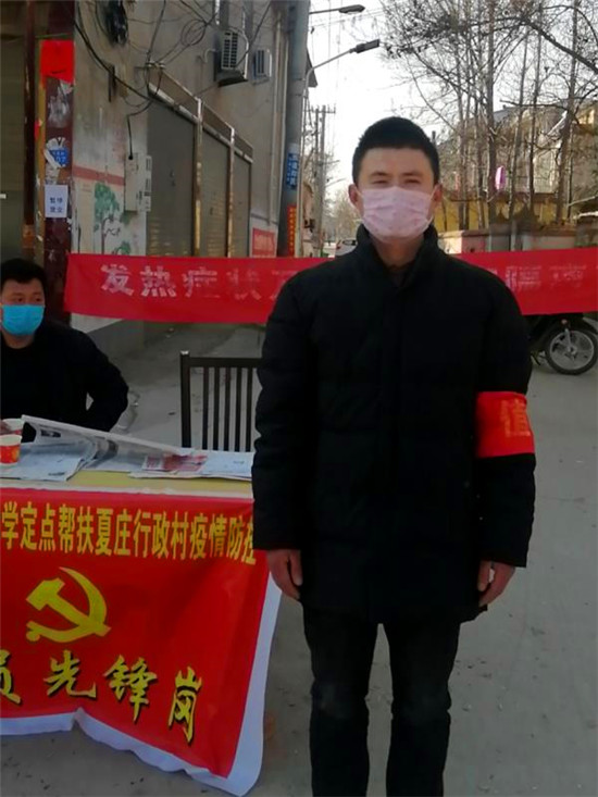 今年35歲的劉磊,2005年,劉磊同志應(yīng)征入伍,在四川省成都軍區(qū)某部服役,服役期間表現(xiàn)優(yōu)秀,榮獲個(gè)人三等功一次,2006年光榮加入中國共產(chǎn)黨,2007年退出現(xiàn)役?;氐郊亦l(xiāng)后,作為共產(chǎn)黨員、民兵骨干,劉磊一直嚴(yán)格要求自己,積極參與行政村各項(xiàng)公共事務(wù),自疫情發(fā)生以來,劉磊與村兩委干部一起通過向群眾發(fā)放宣傳單、懸掛橫幅、張貼標(biāo)語、出動(dòng)宣傳車輛、廣播大喇叭播放等方式向本村群眾宣傳疫情防護(hù)知識(shí),又積極利用夏莊村微信群、微信公眾號(hào)向群眾發(fā)布疫情消息,切實(shí)提高群眾對疫情的防護(hù)意識(shí)。
