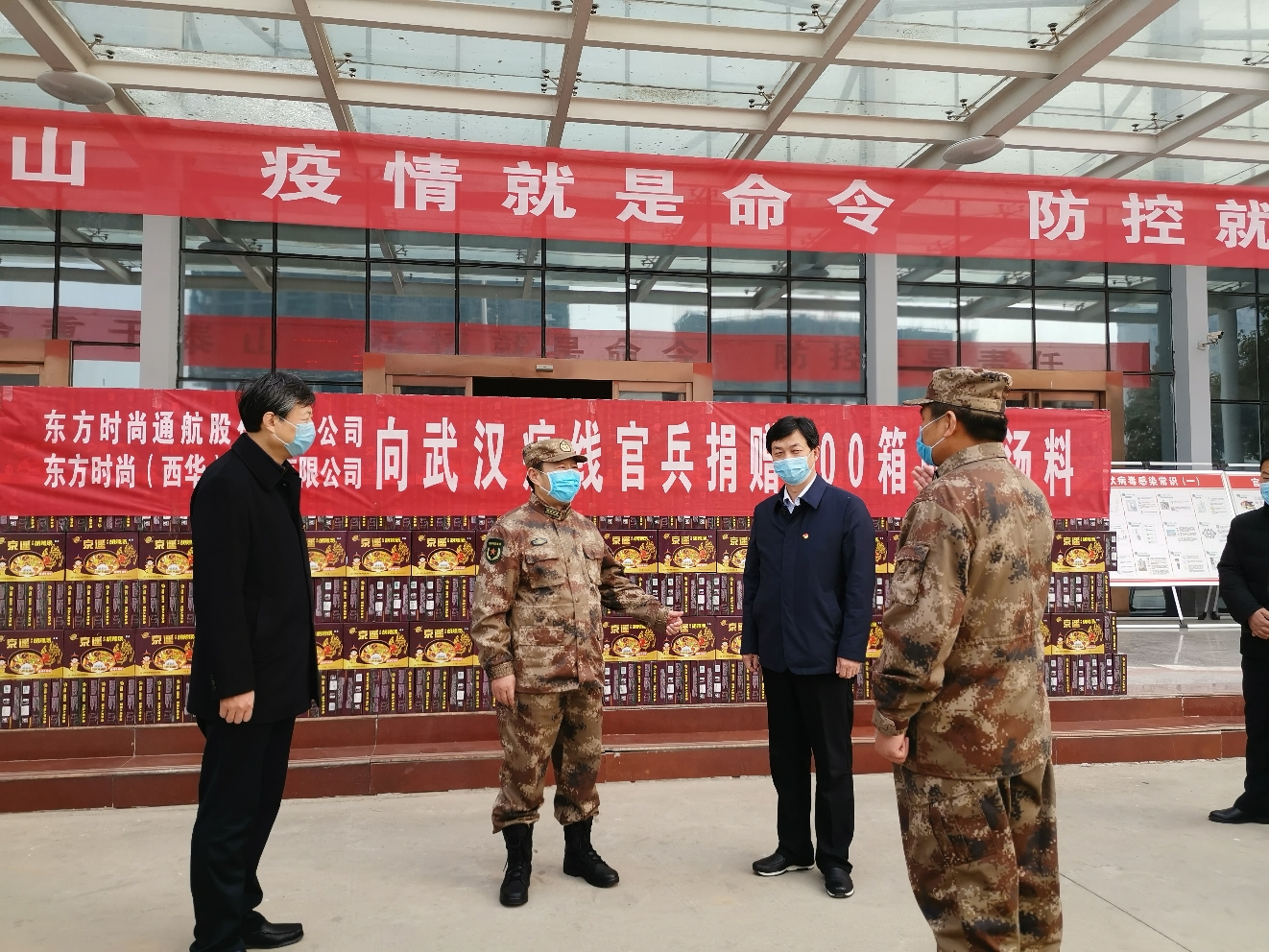 在西華縣人武部院內(nèi),東方時尚通航股份有限公司向武漢疫線官兵捐獻500件胡辣湯料,表達了企業(yè)對人民子弟兵的深情厚誼。王善沖代表部隊對企業(yè)慰問表示感謝。隨后,王善沖一行人又來到該縣大富城小區(qū),對堅守一線的工作人員表示慰問,鼓勵他們在疫情防控的關鍵時刻要繼續(xù)堅持、不能有放松麻痹思想。