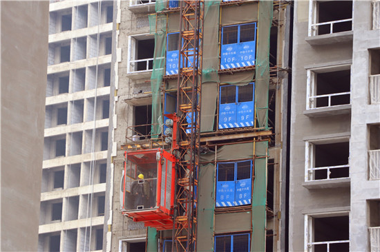 當(dāng)日上午,記者在施工現(xiàn)場(chǎng)看到,樓體外部,工人們隨著升降吊籃的上下正在緊張有序地進(jìn)行外墻保溫施工;樓體內(nèi),工人們正在進(jìn)行內(nèi)墻的粉刷及水泥地板的鋪設(shè),里里外外一派忙碌的景象。