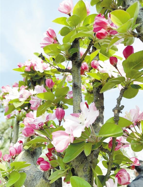 海棠花姿瀟灑、花開似錦,自古以來是雅俗共賞的名花,素有“花中神仙”“花貴妃”“花尊貴”之稱。海棠還有“國艷”之譽(yù),在皇家園林中,它常與玉蘭、牡丹、桂花相配植,形成“玉堂富貴”的意境。