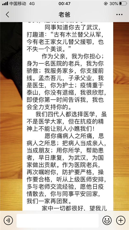 但王孟杰沒想到,她會再收到父親通過微信寫給她的這封家書。