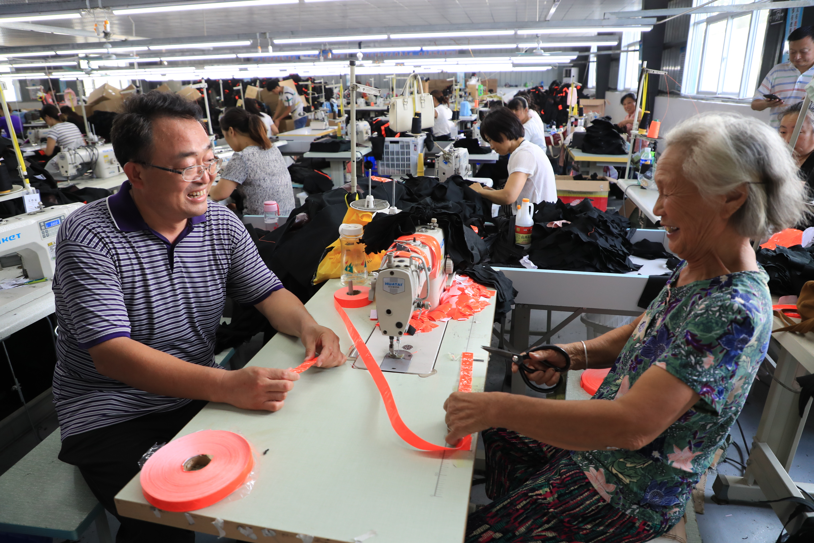 第二天上午9點,變壓器安裝調試到位,王書記準時邀請許奮勇來到扶貧車間,許奮勇看到因一宿未睡而兩眼通紅的王書記時深受感動,當即表態(tài),翰璽服飾有限公司落戶瓦房莊扶貧車間。