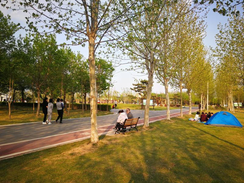 4月13日,周口植物園內(nèi)游人如織,市民或三三兩兩健身散步,或聚在一起玩耍聊天,盡情享受綠樹成蔭、鳥語花香的舒適環(huán)境。