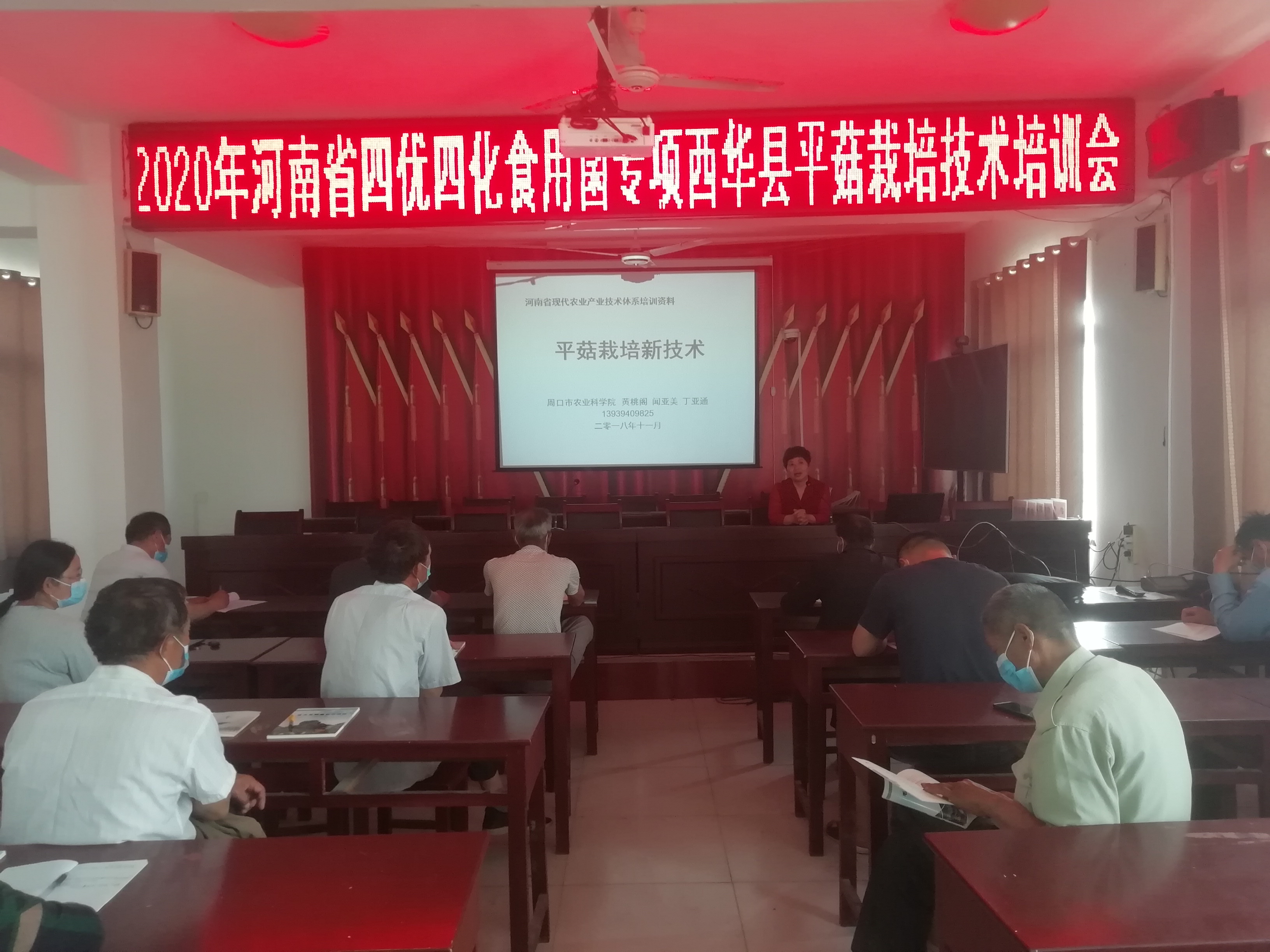 5月4日上午,2020年河南省四優(yōu)四化食用菌專項西華縣平菇栽培技術培訓會在該縣大王莊鄉(xiāng)農(nóng)民培訓中心舉辦。活動邀請市食用菌專家黃桃閣進行技術指導、專題講授。來自全縣農(nóng)科所部分農(nóng)業(yè)科研人員、部分鄉(xiāng)鎮(zhèn)食用菌種植專業(yè)合作社負責人等40余人參加培訓。