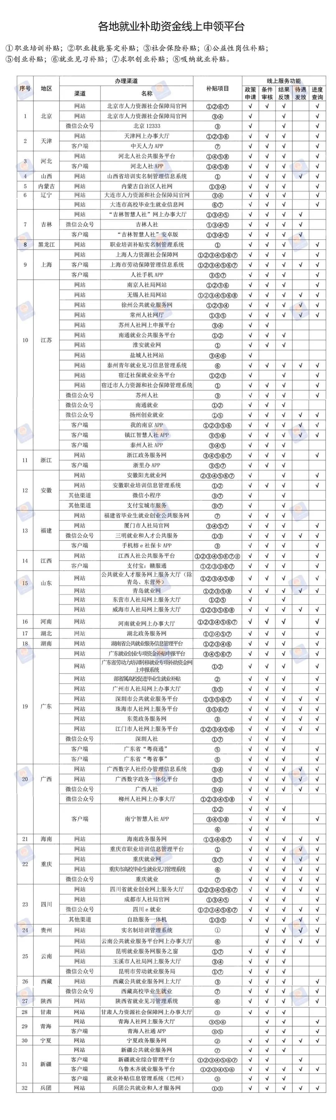 近日,人社部、財(cái)政部印發(fā)《關(guān)于發(fā)布就業(yè)補(bǔ)貼類政策清單及首批地方線上申領(lǐng)平臺的通知》,梳理了鼓勵(lì)企業(yè)吸納就業(yè)和支持勞動(dòng)者就業(yè)創(chuàng)業(yè)的就業(yè)補(bǔ)貼類政策清單,并匯總了各地線上申領(lǐng)平臺。