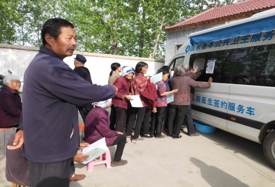 初夏時(shí)節(jié),豫東大地油綠的麥田洋溢著豐收的期待。一大早,項(xiàng)城市李寨鎮(zhèn)李寨行政村文化廣場(chǎng)內(nèi)就熱鬧起來(lái),全村幾百名家庭醫(yī)生簽約服務(wù)對(duì)象正排隊(duì)在一輛智能云巡診車(chē)前有序接受健康體檢。