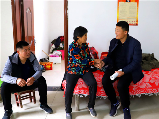 “我先說。2015年建軍節(jié),我到鎮(zhèn)政府去接劉俊義,他帶著鋪蓋和鍋碗瓢盆,看身材、看氣質,當時我就問‘你當過兵吧?’他干脆地回答‘是’。這個日子我記得清,那天下了雨,閑置多年的村室漏雨沒法住,劉俊義又連夜回城,第二天就帶人來整修村室、打掃衛(wèi)生?!痹诓稍L座談會上,時任馬莊行政村黨支部書記的于天同眼泛淚花說:“咱也不遮不掩,之前馬莊確實是村級黨組織軟弱渙散村,貧困戶多,工作艱難。劉俊義來了之后,處處作表率,沒日沒夜拼命地干,大雨中幫趙冬升家收麥子、爬房頂幫于小非家修屋子……更關鍵的是請公路局把全村的路修通了,裝上了路燈,一條扶貧路通到馬莊村群眾的心窩里,是黨的光輝把馬莊3000多人的心照亮了?!?/p>