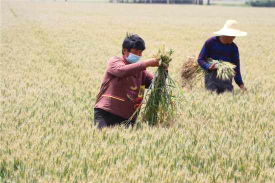 “今年共繁育良種小麥‘冠麥1號、中農(nóng)4007’兩個品種,這兩個品種的特點(diǎn)就是產(chǎn)量高、抗災(zāi)能力強(qiáng)。”棗集農(nóng)場副場長趙云霄介紹,我們要做的工作就是徹底清除田間雜株、雜草、雜穗、大麥、燕麥,以保證小麥良種純度。小麥去雜提質(zhì)對種子安全、糧食質(zhì)量保障是非常重要的一環(huán),目前只能依靠人工去雜,經(jīng)過兩次去雜提純后,第一代良種即將迎來豐收,預(yù)計今年畝產(chǎn)將達(dá)到1200斤。