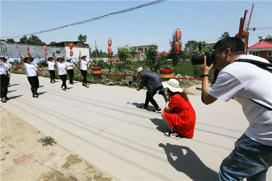 采風(fēng)期間,10多名專業(yè)攝影師奔赴奉母鎮(zhèn)前邵村、前于王村以及孝賢碑林等地,進(jìn)行實地探訪采風(fēng)。前邵村是當(dāng)?shù)赜忻膫鹘y(tǒng)村落,村里文化氛圍濃厚,先后走出10多位戲曲方面的國家一級演員。在該村,一支業(yè)余的文藝宣傳隊引起攝影家們關(guān)注的目光。大家即興表演了兩三個節(jié)目,引得攝影家們極大興趣,不停按下快門拍攝。