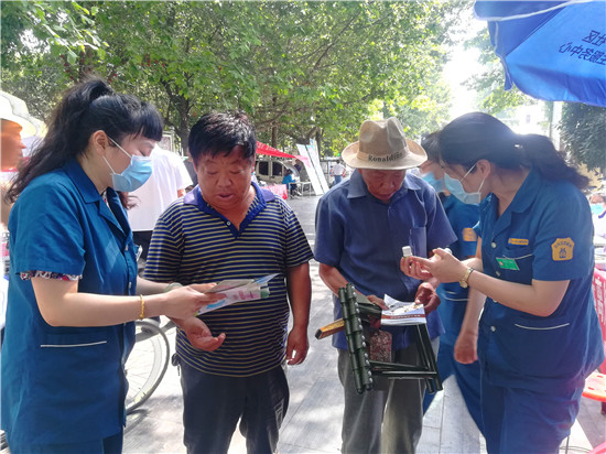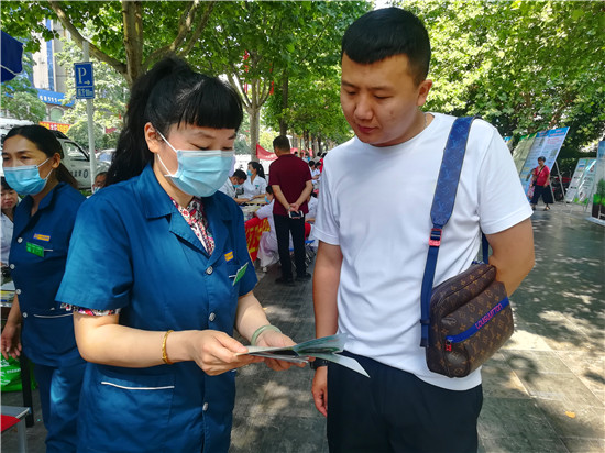 活動(dòng)現(xiàn)場(chǎng),參加宣傳活動(dòng)的各單位工作人員為市民散發(fā)宣傳相關(guān)資料,并為市民進(jìn)行義診。