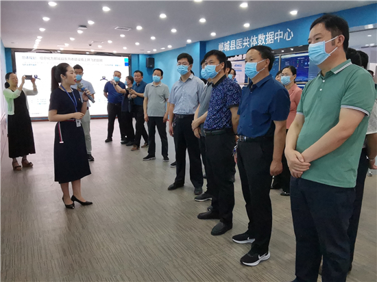 當(dāng)日上午9時,5個縣市的負(fù)責(zé)同志來到鄲城之后現(xiàn)場組成參觀團(tuán),進(jìn)入鄲城縣政府投資3500萬元興建的全民健康信息化服務(wù)中心,并參觀了第二醫(yī)療健康服務(wù)集團(tuán)(鄲城中醫(yī)院)的醫(yī)共體運(yùn)營管理中心、醫(yī)保監(jiān)管中心和財務(wù)監(jiān)管中心“三大運(yùn)營管理中心”。