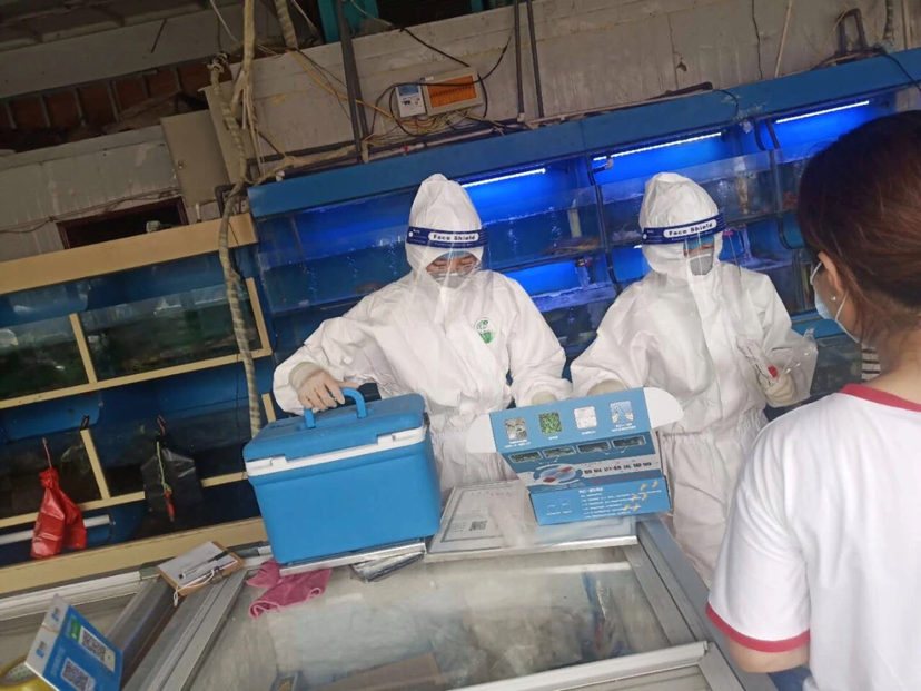 當(dāng)日,分別對(duì)6月14日排查中發(fā)現(xiàn)的一箱三文魚(yú)、銷售三文魚(yú)的電子秤、分割案板等相關(guān)器具進(jìn)行了核酸檢測(cè),隨后又對(duì)周邊經(jīng)營(yíng)進(jìn)口凍品的人員及相關(guān)產(chǎn)品也進(jìn)行抽樣檢測(cè)。抽樣完畢后,市場(chǎng)監(jiān)管分局執(zhí)法人員繼續(xù)對(duì)市場(chǎng)內(nèi)的水產(chǎn)品批發(fā)經(jīng)營(yíng)區(qū)進(jìn)行檢查,查看商戶的相關(guān)資質(zhì)和經(jīng)營(yíng)環(huán)境,檢查了海鮮類產(chǎn)品的進(jìn)貨渠道及相關(guān)檢疫證明等,共計(jì)檢查海鮮商戶5戶、凍品商戶7戶、水產(chǎn)區(qū)商戶8戶,未發(fā)現(xiàn)由北京新發(fā)地市場(chǎng)進(jìn)口的三文魚(yú)類海鮮產(chǎn)品及國(guó)外重點(diǎn)疫區(qū)進(jìn)出口水產(chǎn)品。