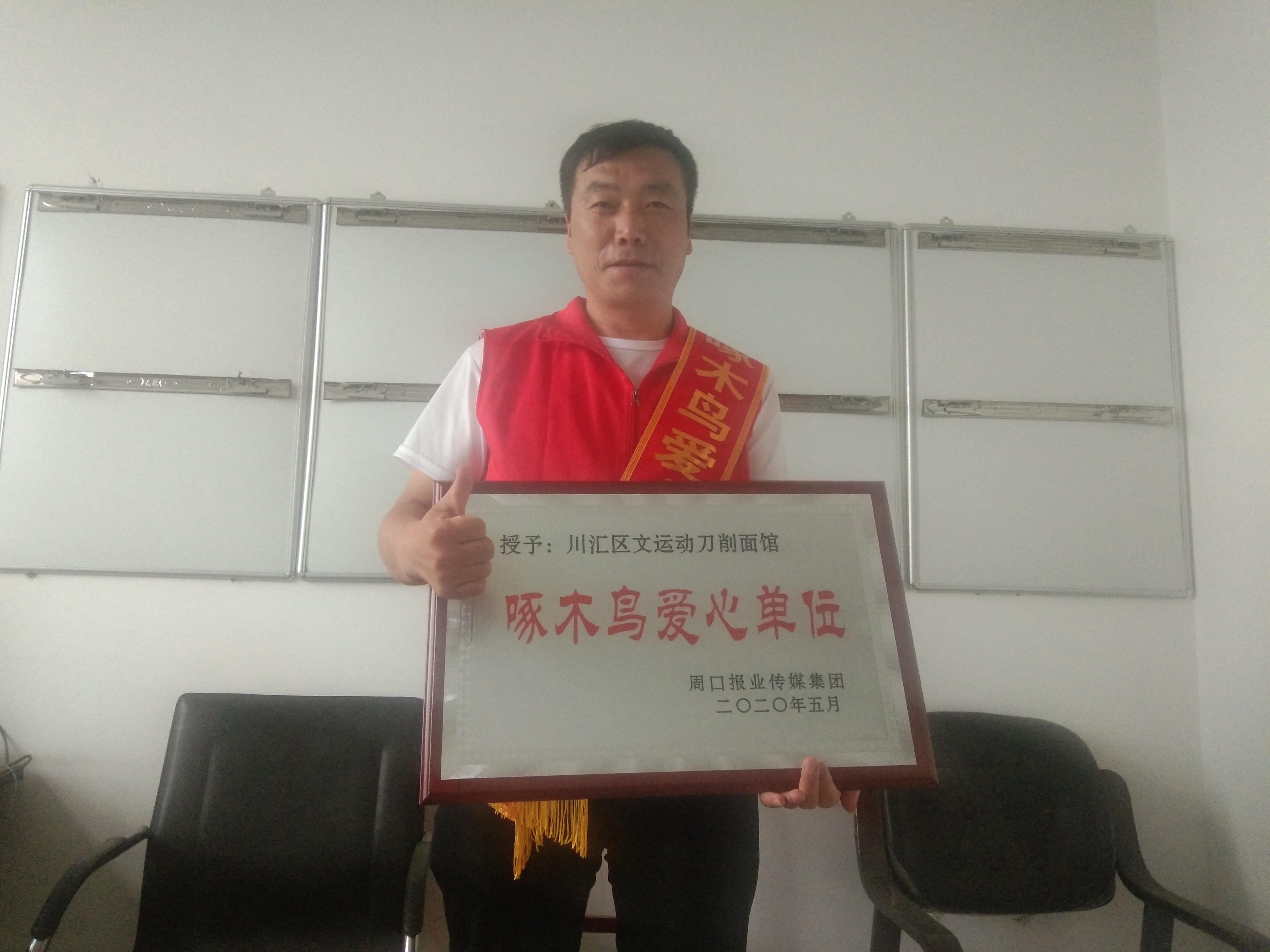 6月15日下午,周口報業(yè)傳媒集團14樓會議室內(nèi),熱鬧非凡,10名優(yōu)秀啄木鳥志愿者和10家啄木鳥愛心單位被隆重表彰,他們一個個身披綬帶,上臺領(lǐng)獎,臉龐洋溢著自信而美麗的笑容。而文運動經(jīng)營的“川匯區(qū)文運動刀削面館”被評為啄木鳥愛心單位,這無疑是對他多年來堅持參加公益事業(yè)的褒獎。