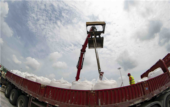 近日,吞吐量達(dá)千萬噸的周口港口非常忙碌,工業(yè)用堿成為當(dāng)前主要的運輸貨物,由周口本土生產(chǎn)的堿源源不斷地在此卸車裝船,運往下游的蕪湖。作為內(nèi)陸最大的內(nèi)河航運,沙潁河通江達(dá)海,成為2重要的黃金水道。記者 梁照曾 攝