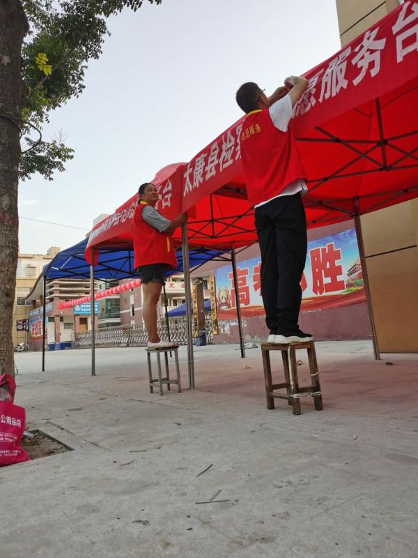 6日下午3時許,鄭雪艷和王作宇二人被安排到太康縣華夏外國語高考考點負責為考生和家長搭建11個茶水棚?!跋挛?點正是一天中最熱的時候,考點附近也沒有樹蔭。”太康縣網(wǎng)信辦副主任高一麟回憶說,要在天黑之前搭建好11個茶水棚,對于鄭雪艷和王作宇兩人來說并非易事。