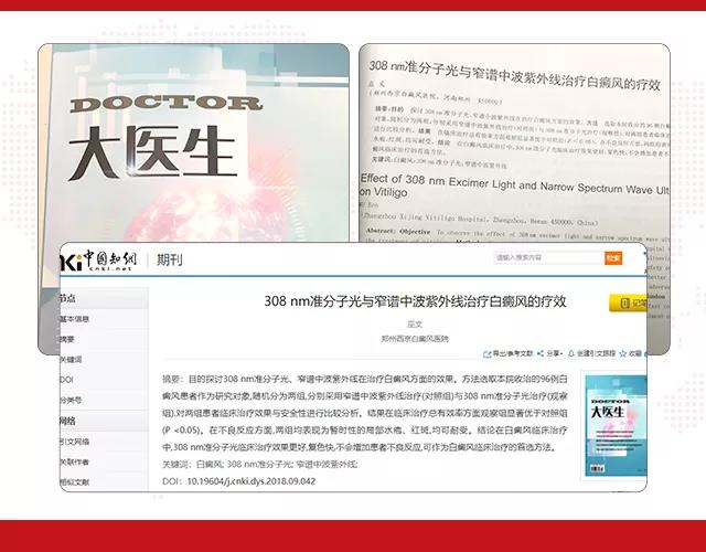 ▲《大醫(yī)生》醫(yī)學(xué)期刊-《308 nm準(zhǔn)分子光與窄譜中波紫外線治療白癜風(fēng)的療效》·巫文