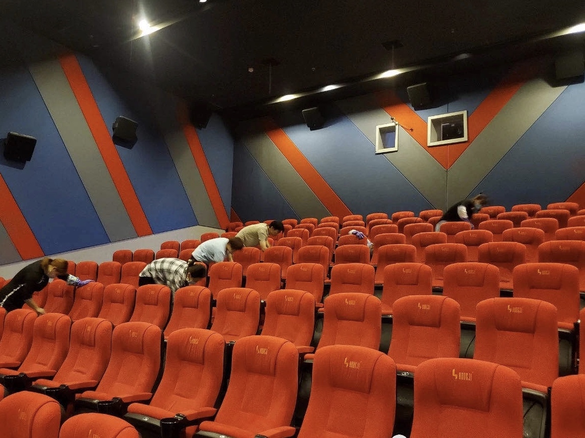 “停業(yè)六個(gè)月,終于等來了即將開門的喜訊?!苯ㄐ侣芬患矣俺枪ぷ魅藛T說。由于防疫需要,自1月24日以來,一直處于停業(yè)狀態(tài)。7月20日上午,記者來到影院看到工作人員正在對(duì)觀影設(shè)備進(jìn)行檢測、調(diào)試,并對(duì)影廳、公共區(qū)域等處進(jìn)行深度防潮防霉、消毒工作,以安全整潔的環(huán)境迎接影院重開。
