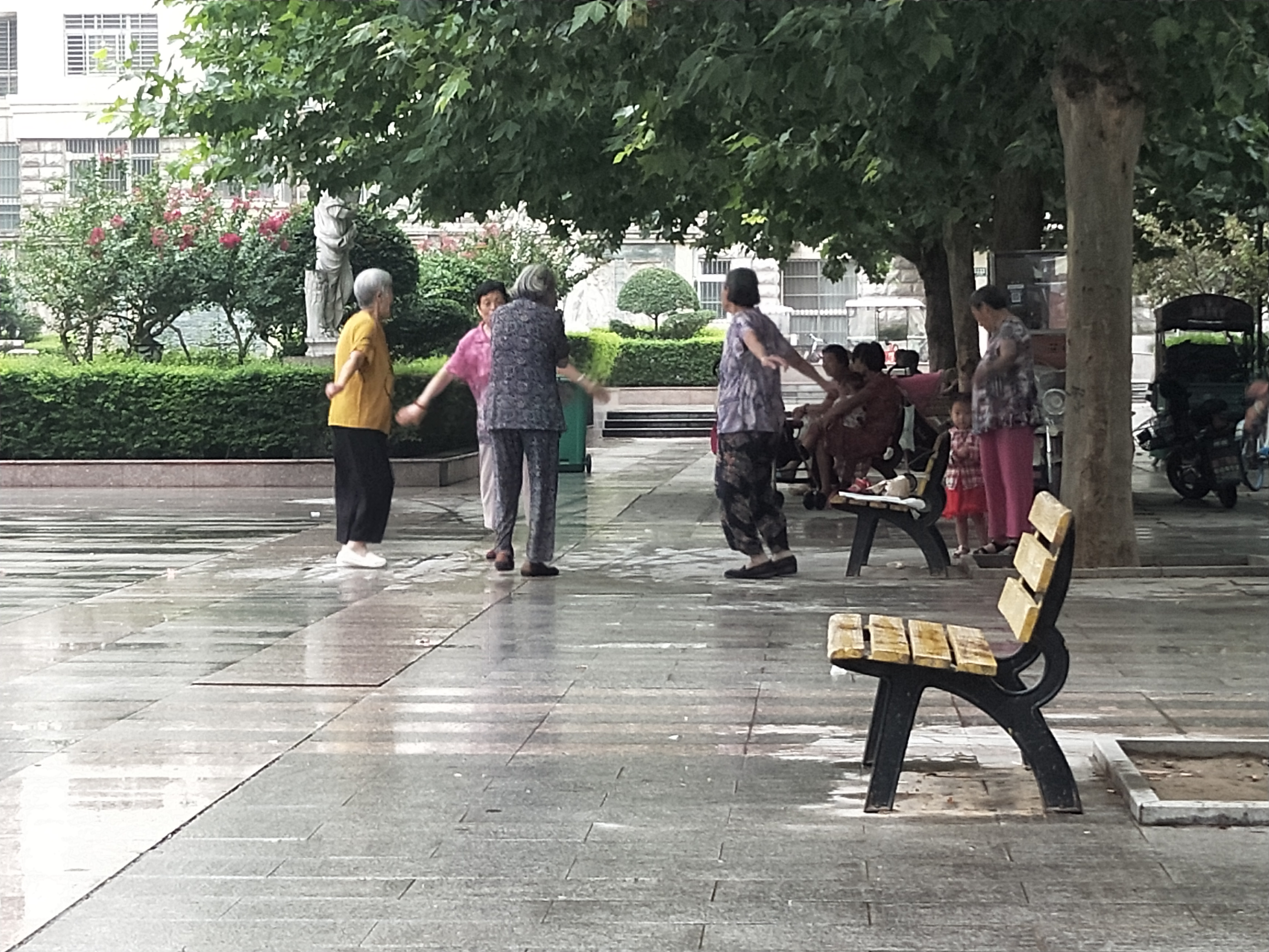 上午8點(diǎn),天空隱約下著小雨,記者在北門小區(qū)廣場(chǎng)的噴泉旁邊轉(zhuǎn)轉(zhuǎn)。幾位70多歲的老人坐在排椅上,音響里傳來很大的戲曲聲回蕩在廣場(chǎng)上?!白疃鄷r(shí)有十幾個(gè)人吧,每天早上8點(diǎn)左右開始做操,音響聲音調(diào)得比較大,我家恰好就在這噴泉廣場(chǎng)西邊,在家里聽得很清楚?!崩钆恐v,由于工作原因,她經(jīng)常上夜班,想睡個(gè)好覺也不能如愿,她也向物業(yè)反映過,可是一直沒有什么效果。