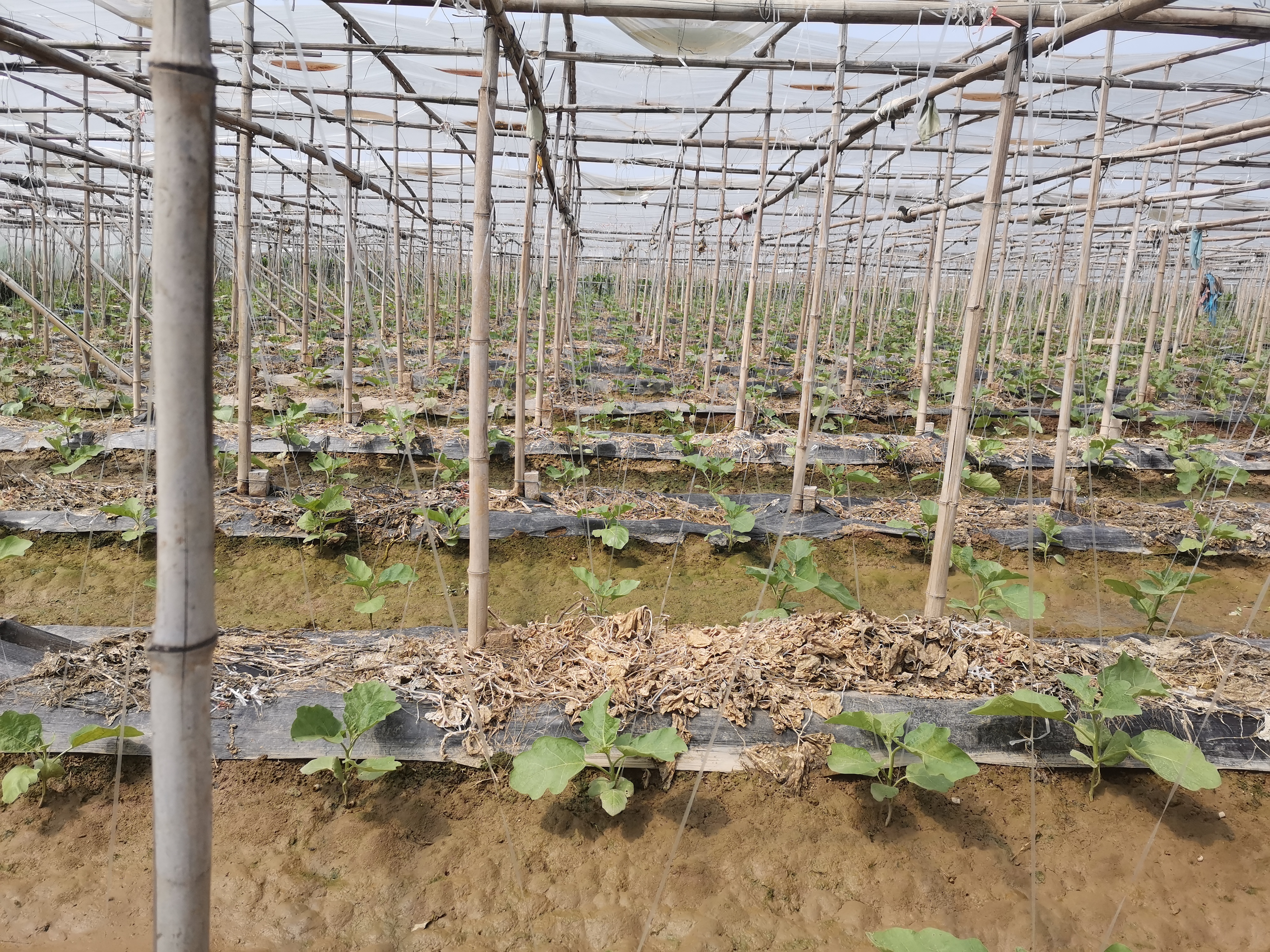 “春爭日,夏爭時”,又到一年農(nóng)忙時。近日,在曹里鄉(xiāng)西吳行政村,架構(gòu)、鋪膜……一個個新定植的巨型棚拔地而起,占地2000多畝的巨型棚蔬菜園區(qū),宛如白色的海洋。大棚內(nèi)茄子苗生機(jī)盎然,田間地頭、種植大棚里處處呈現(xiàn)一派忙碌的景象。