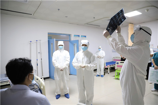 演練中,一名中年男子駕車到港區(qū)醫(yī)院就診,患者自述一周來在外地居住,無(wú)發(fā)熱癥狀,近一天來有氣促,活動(dòng)后胸悶、氣促加重,偶有咳嗽。經(jīng)急診科醫(yī)生多次詳細(xì)詢問流行病學(xué)史,發(fā)現(xiàn)患者有隱瞞病史嫌疑(一周前同室居住工友,23日已確診為新冠患者),確定該病員為可疑新冠病毒肺炎患者。立即電話通知科主任及醫(yī)療救治專家組成員會(huì)診,根據(jù)患者主訴和臨床表現(xiàn),專家組分析高度懷疑病人為可疑感染新冠病毒病員。立即轉(zhuǎn)運(yùn)至隔離留觀室,并通知傳染病管理小組將疫情上報(bào)至市疾病預(yù)防控制中心,并協(xié)助對(duì)該病員進(jìn)行流行病學(xué)調(diào)查、轉(zhuǎn)運(yùn)及指導(dǎo)消毒、滅菌等工作。經(jīng)市級(jí)專家會(huì)診后,符合疑似病例,按照區(qū)防控指揮部規(guī)定,采用負(fù)壓轉(zhuǎn)運(yùn)車轉(zhuǎn)運(yùn)定點(diǎn)醫(yī)院治療。