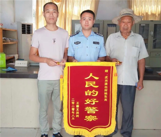 “沒(méi)想到,真沒(méi)想到,我這輩子還能與兒子相見,太感謝你了?!弊蛉?,鄲城縣虎崗鄉(xiāng)派出所戶籍室門口鞭炮齊鳴,該鄉(xiāng)王寨行政村75歲的貧困戶王洪周和兒子王鐵練及親屬向戶籍民警姚東亮送上錦旗后,感激之情溢于言表。