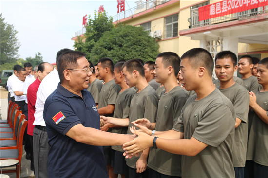 9月9日上午,在鹿邑縣預(yù)定新兵役前訓(xùn)練集結(jié)之際,資深媒體人、北京周口企業(yè)商會秘書長、鹿邑縣雙擁愛心協(xié)會發(fā)起人張杰特別邀請享受正軍級職資待遇、終身享受國務(wù)院政府特殊津貼的鹿邑籍將軍畢啟亮,為鹿邑縣343名體檢、政考雙合格的“準(zhǔn)新兵”上了一堂精彩的國防教育課,同時還向“準(zhǔn)新兵”每人捐贈一套由周口商水籍原總政治部秘書長、軍事科學(xué)院副政治委員,第二炮兵副政治委員程寶山中將親手題寫“昨日是鄉(xiāng)親,今天成戰(zhàn)友——從軍報國志高遠(yuǎn),不忘家鄉(xiāng)故土情”的筆記本和鋼筆一支。鹿邑縣人武部部長范亞光,縣退役軍人事務(wù)管理局負(fù)責(zé)同志以及鹿邑縣雙擁愛心協(xié)會團(tuán)體在現(xiàn)場聆聽國防教育課并參加捐贈活動。