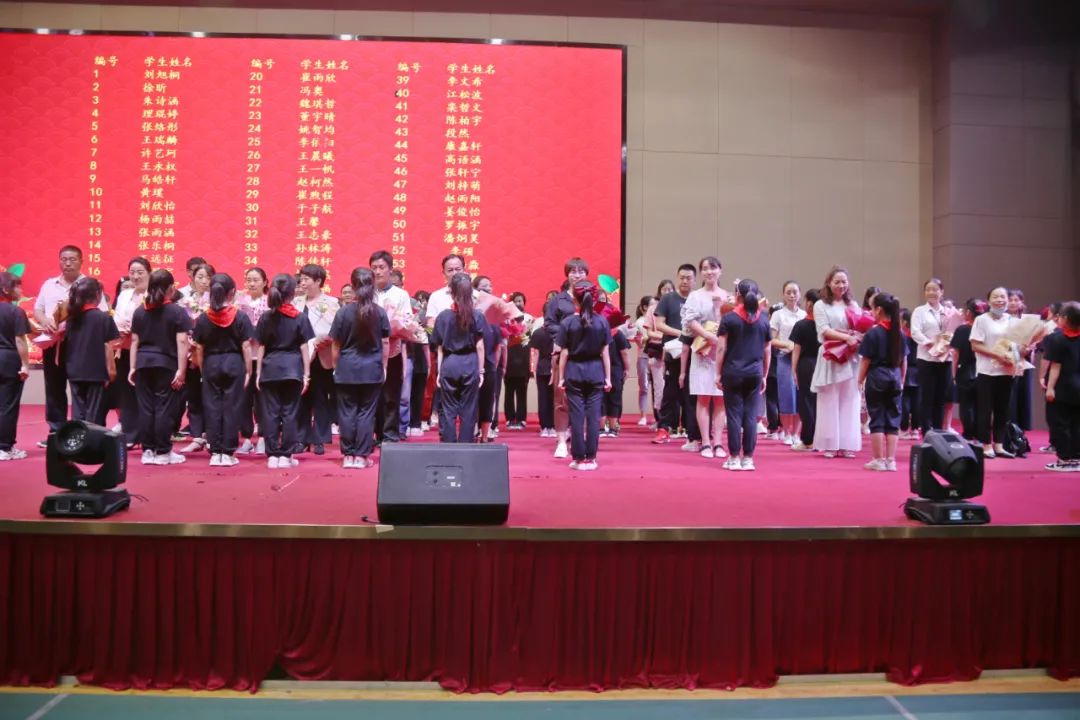 鮮花,掌聲,笑臉,燈光,音樂,畫面。三隊(duì)少先隊(duì)員們手捧鮮花,先后五次走上舞臺(tái),把250束鮮花獻(xiàn)給了250名家長(zhǎng)老師,并齊聲向老師們祝愿:老師,節(jié)日快樂!
