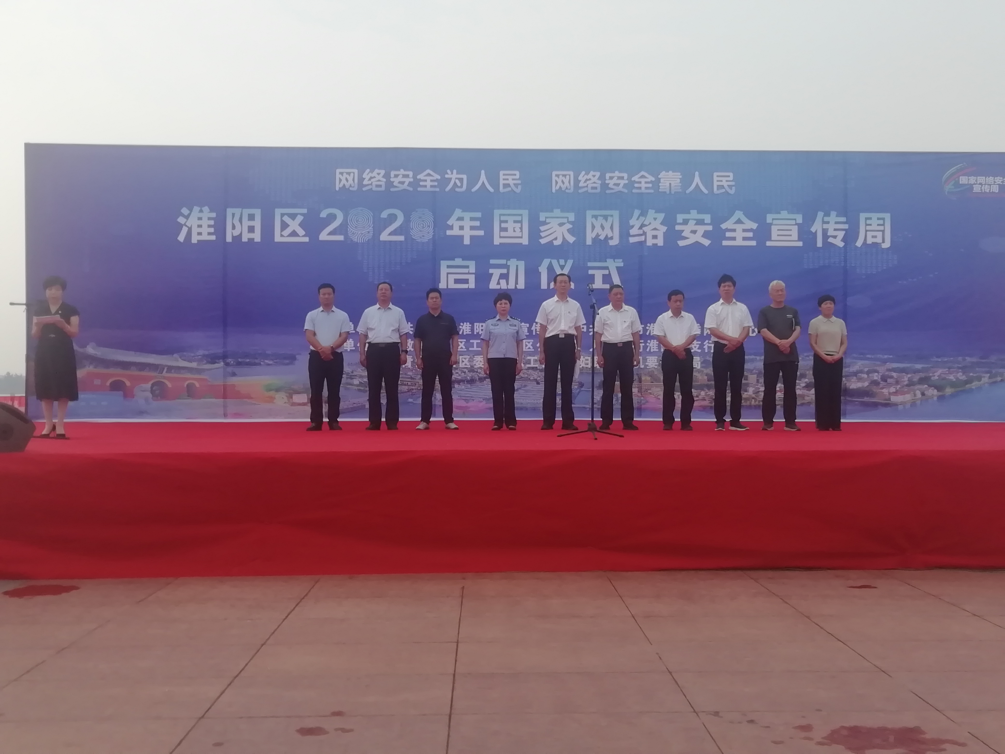 9月14日上午,淮陽區(qū)2020年國家網絡安全宣傳周啟動儀式在羲皇文化廣場舉行。今年國家網絡安全周的主題是“網絡安全為人民,網絡安全靠人民”。市政協(xié)副主席、區(qū)委書記馬明超宣布淮陽區(qū)2020年國家網絡安全宣傳周正式啟動。區(qū)委常委、宣傳部長部長謝留定,區(qū)人大常委會副主任孟華,區(qū)政協(xié)副主席李守運,區(qū)公安局局長李鳳麗及區(qū)委網絡安全和信息化委員會成員單位主要負責同志等參加了啟動儀式。