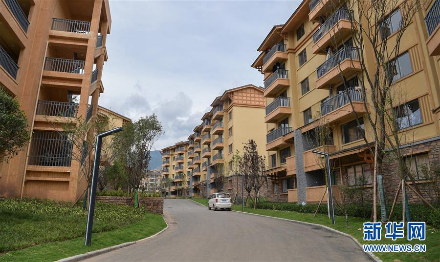 搬下山的人們,住進了有彝族傳統(tǒng)建筑風格的新社區(qū)(8月11日攝)。 新華社記者 李賀 攝