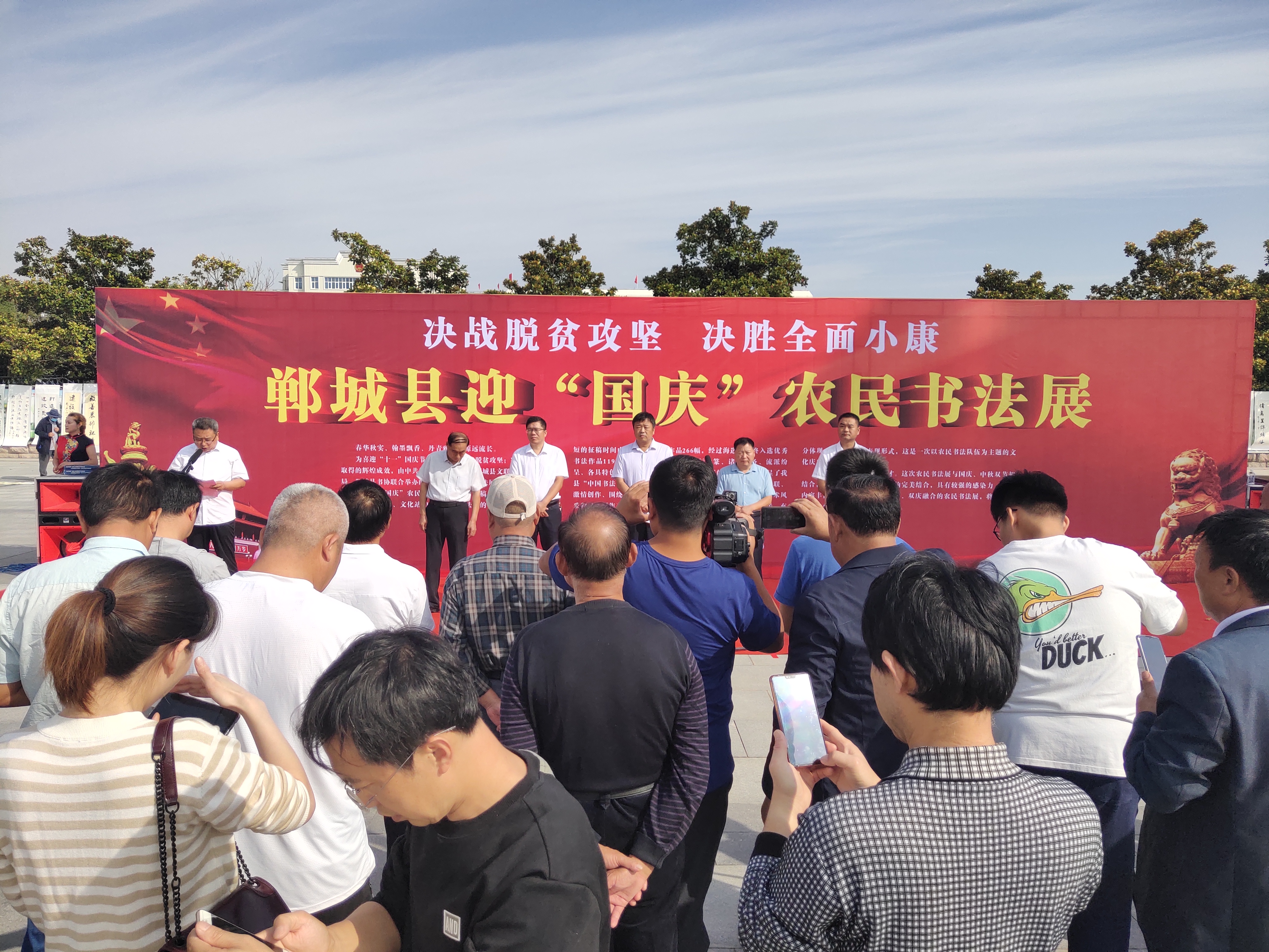 9月28日上午,由鄲城縣委宣傳部、縣文聯(lián)、縣文廣旅局、縣書協(xié)聯(lián)合舉辦的迎“國慶”農(nóng)民書法展在世紀廣場舉行。該縣人大常委會主任李建軍,縣政協(xié)主席王偉,縣委常委、宣傳部長吳青鋒等出席活動。