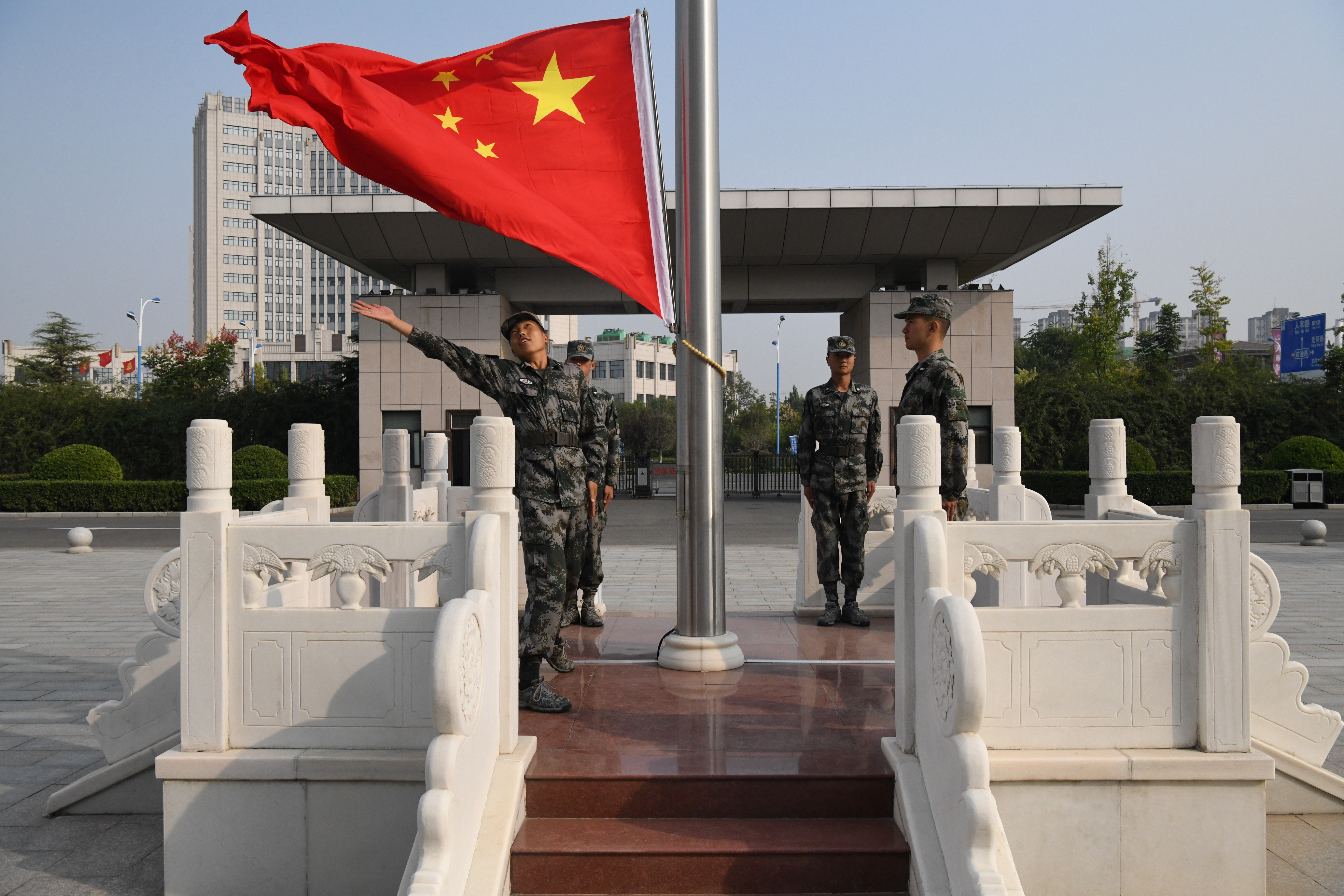 國旗飄揚(yáng)激發(fā)革命斗志,軍歌嘹亮詮釋忠誠誓言。10月1日上午,周口軍分區(qū)舉行升國旗儀式慶祝中華人民共和國71周年華誕。來自周口軍分區(qū)機(jī)關(guān)、市民兵武器裝備倉庫的全體官兵職工、文職人員80人參加了儀式。周口軍分區(qū)司令員湯維政主持儀式。當(dāng)日8時許,全體官兵在軍分區(qū)機(jī)關(guān)營區(qū)升旗臺前整齊列隊,精神飽滿,士氣昂揚(yáng),帶著對祖國最熱忱的祝福,帶著對生活最美好的憧憬,等待著最莊嚴(yán)時刻的到來。隨著一聲“迎國旗”的洪亮口令,英姿颯爽的4名護(hù)旗手邁著鏗鏘有力的步伐護(hù)送國旗走向升旗臺。伴隨著雄壯的《義勇軍進(jìn)行曲》,升旗手抬手振臂,鮮艷的五星紅旗迎風(fēng)展開,在官兵們的注目下冉冉升起。