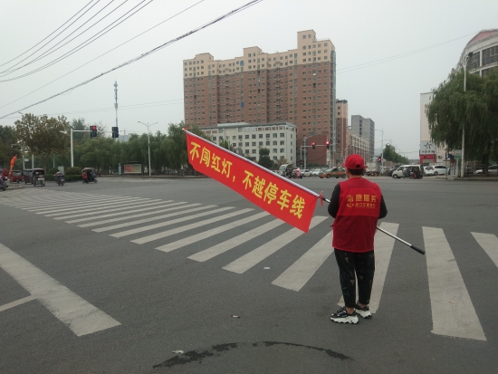 10月12日,記者在周口中心城區(qū)交通大道與建安路交叉口看到,幾名志愿者手中的小紅旗“加長(zhǎng)了”,上面還寫(xiě)有“不闖紅燈,不越停車線”的溫馨提示語(yǔ)。路過(guò)此處,不少市民把目光投在了這個(gè)加長(zhǎng)的小紅旗上,有的還輕聲讀出紅旗上的標(biāo)語(yǔ)。通過(guò)這些溫馨提示語(yǔ),讓市民在潛移默化中逐漸增強(qiáng)文明出行的意識(shí)。記者 張洪濤 攝 ②5