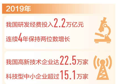 科技創(chuàng)新助推高質(zhì)量發(fā)展,我國創(chuàng)新型經(jīng)濟格局初步形成。截至2019年,全國高新技術(shù)企業(yè)達到22.5萬家,科技型中小企業(yè)超過15.1萬家。作為培育高新技術(shù)產(chǎn)業(yè)的重要載體,高新區(qū)5年來量質(zhì)同步提升。2019年,169家國家高新區(qū)生產(chǎn)總值達12萬億元,經(jīng)濟總量占全國的1/10以上。
