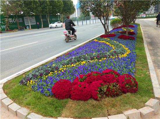 紅色、黃色、紫色的花兒,還有造型別致的景觀樹……10月21日,記者在周口中心城區(qū)七一東路上的一處綠化帶內看到了這樣一組造型別致的景觀造型,扮靚了綠化帶,給人耳目一新的感覺。記者 張洪濤 攝