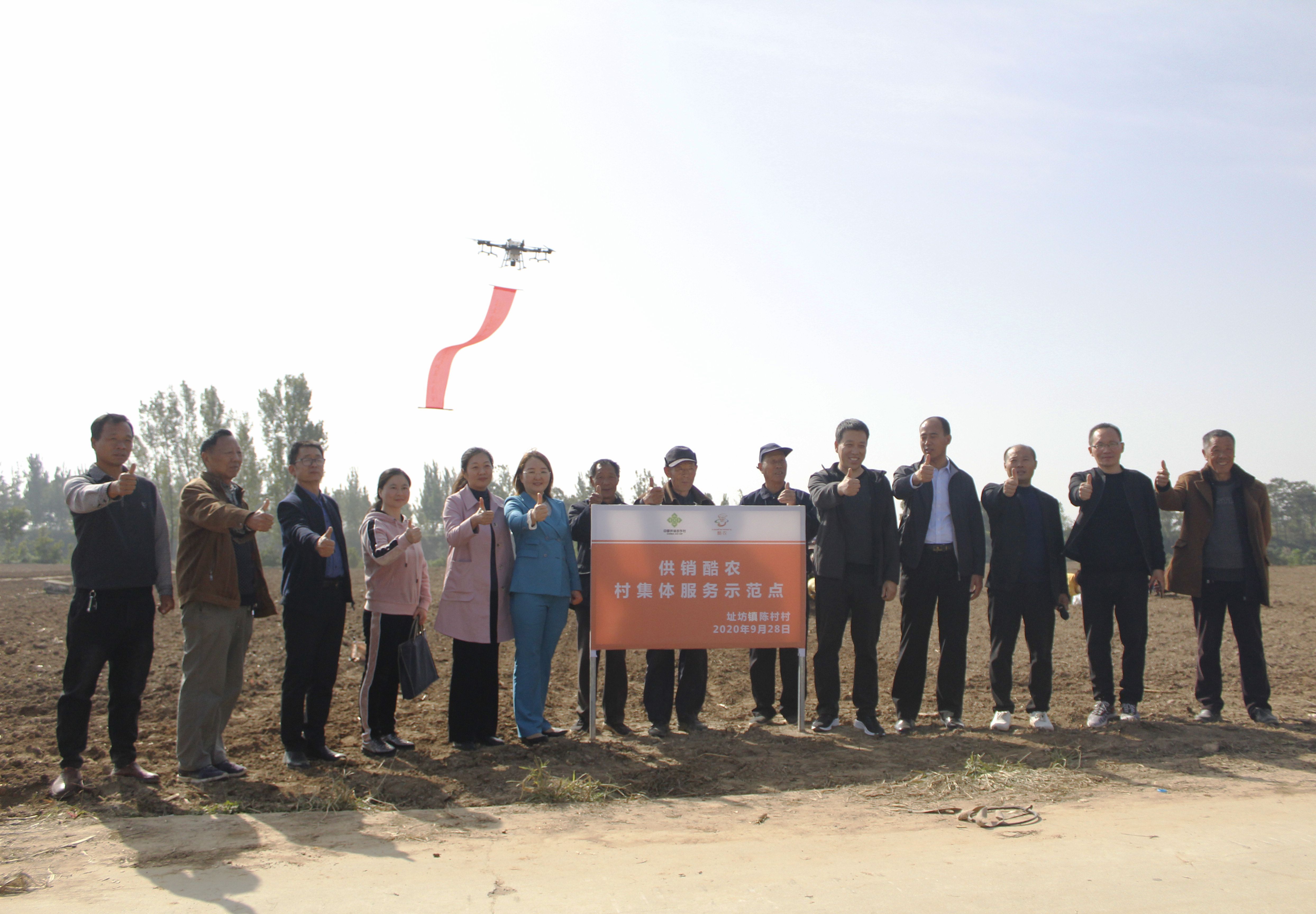 “合作的項(xiàng)目產(chǎn)業(yè)涵蓋了農(nóng)業(yè)生產(chǎn)資料、農(nóng)藥、生活用品的線(xiàn)上線(xiàn)下供應(yīng),土地大田托管,無(wú)人機(jī)械耕作、播種、農(nóng)藥噴施、收割等?!眴?dòng)儀式上,周口供銷(xiāo)集團(tuán)為農(nóng)事業(yè)部部長(zhǎng)牛衛(wèi)東介紹說(shuō),陳村村集體股份經(jīng)濟(jì)合作社是周口市供銷(xiāo)集團(tuán)與河南酷農(nóng)科技有限公司(以下簡(jiǎn)稱(chēng)酷農(nóng)無(wú)人機(jī)公司)共同打造的無(wú)人機(jī)進(jìn)鄉(xiāng)村項(xiàng)目,旨在依靠該公司的科技支撐,發(fā)展智慧農(nóng)業(yè)、綠色農(nóng)業(yè),發(fā)揮供銷(xiāo)體系優(yōu)勢(shì),通過(guò)整合無(wú)人機(jī)智能技術(shù)研發(fā)力量,形成無(wú)人機(jī)智能系統(tǒng)的管控?cái)?shù)據(jù)平臺(tái),將硬件軟件數(shù)據(jù)管理方面形成獨(dú)有的供應(yīng)商生產(chǎn)力。