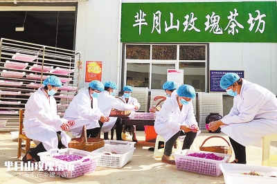銀杏樹溝村村民在村扶貧車間分揀玫瑰花 |