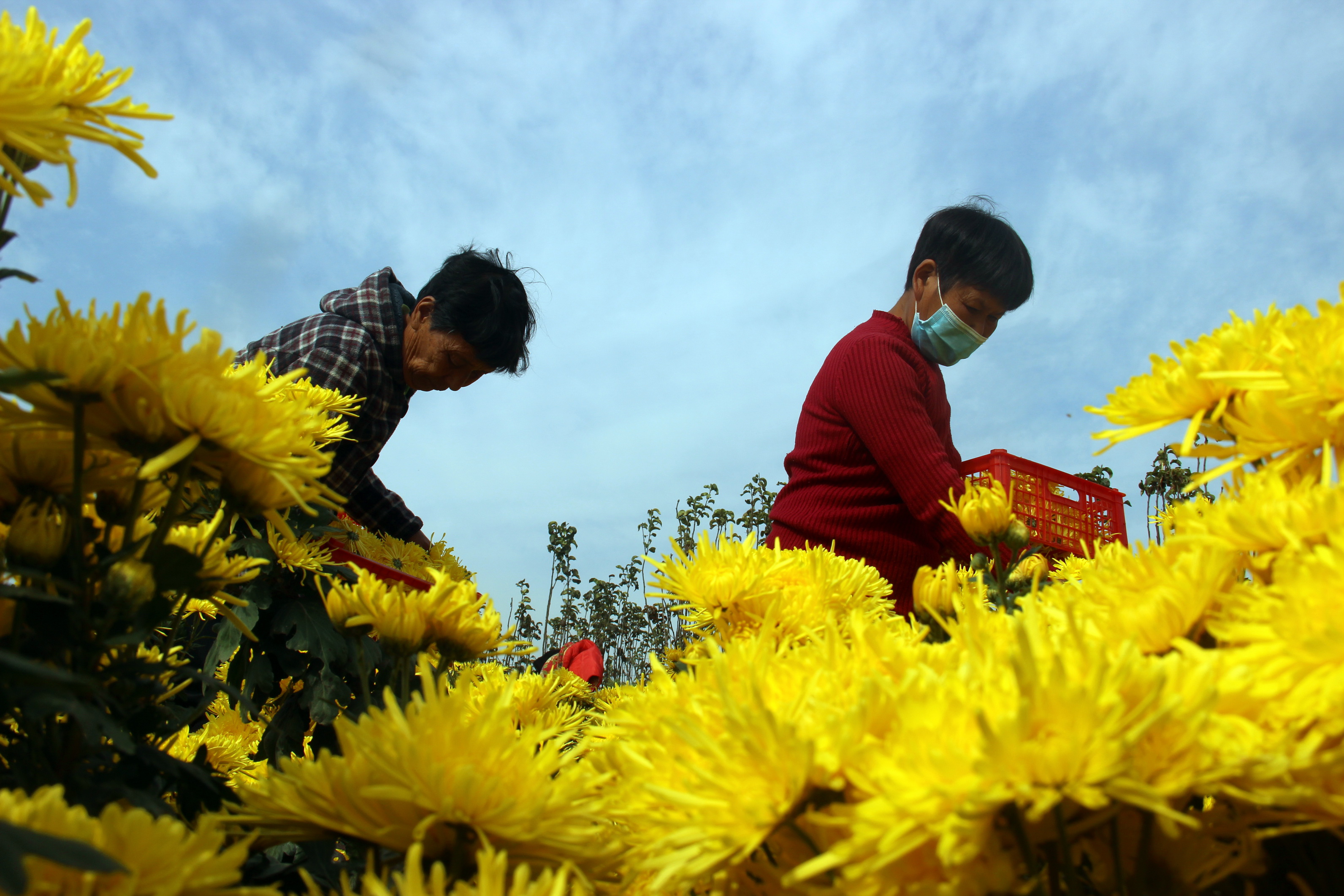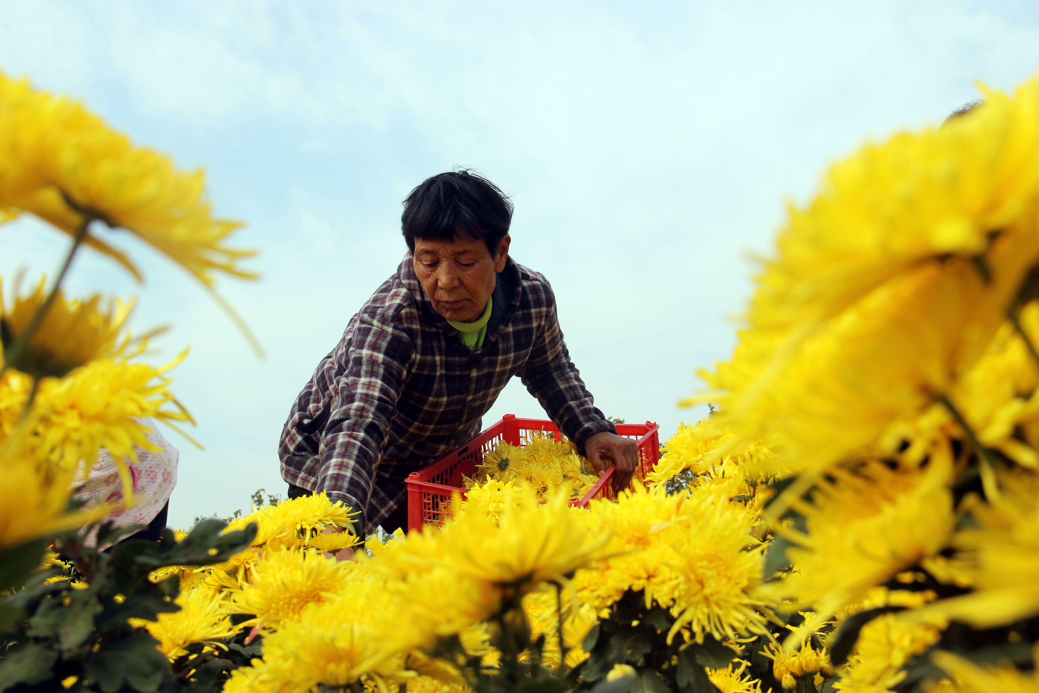 11月3日,商水縣郝崗鎮(zhèn)大路李村貧困戶婦女在李華生的合作社采收金絲黃菊。郝崗鎮(zhèn)政府鼓勵(lì)大路李村負(fù)責(zé)人李華生引進(jìn)金絲黃菊種植帶動貧困戶增收致富,目前該村種植面積達(dá)到百畝,畝效益均在6000元以上。記者付永奇通訊員呂耀光攝