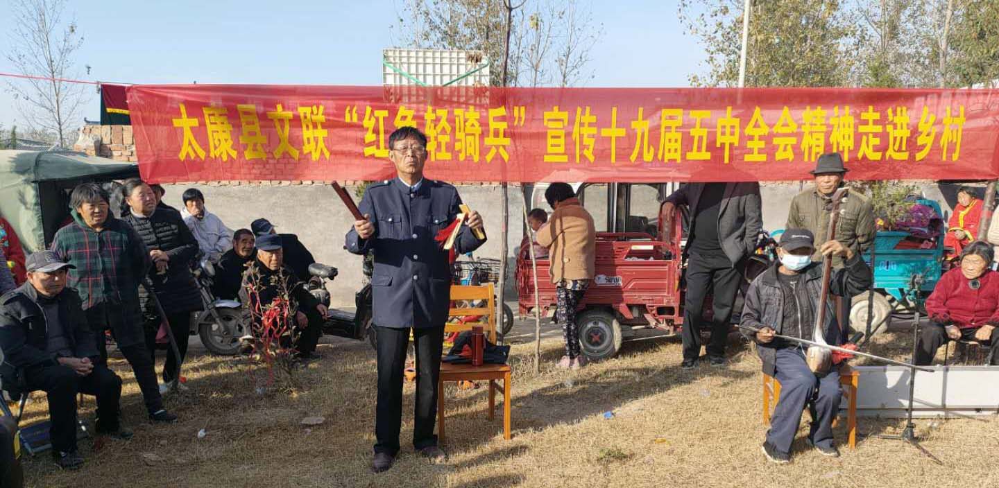 2020年10月26日至29日,黨的十九屆五中全會(huì)在北京召開(kāi),全會(huì)審議通過(guò)了《中共中央關(guān)于制定國(guó)民經(jīng)濟(jì)和社會(huì)發(fā)展第十四個(gè)五年規(guī)劃和二Ο三五年遠(yuǎn)景目標(biāo)的建議》,這是我國(guó)奪取全面建設(shè)社會(huì)主義現(xiàn)代化國(guó)家新勝利的綱領(lǐng)性文件。作為宣傳陣地的文藝輕騎兵,太康縣文聯(lián)迅速組織太康縣民間文藝家協(xié)會(huì)、太康縣曲藝家協(xié)會(huì)、太康縣文藝志愿者協(xié)會(huì)的藝術(shù)家組建文藝“紅色輕騎兵”在全縣開(kāi)展黨的十九屆五中全會(huì)精神的宣傳活動(dòng)。