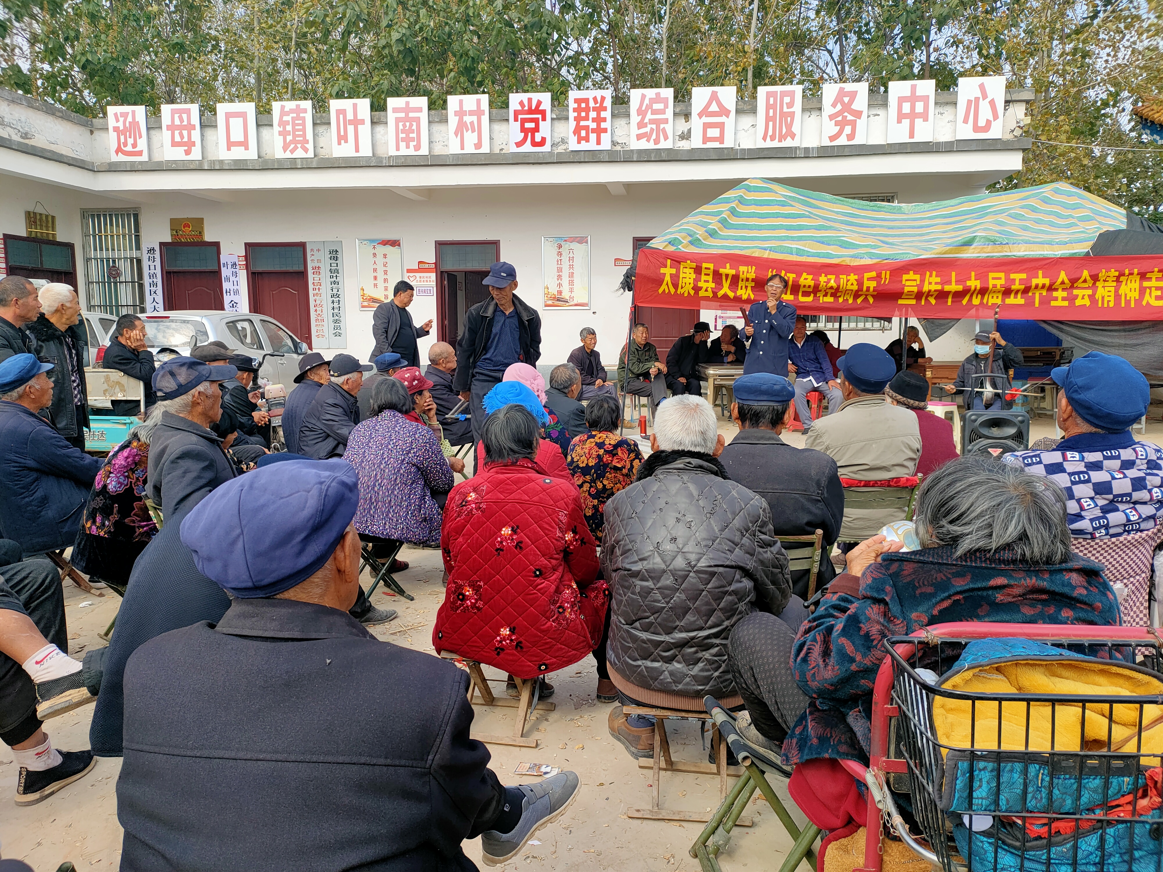 4日上午,太康縣文聯(lián)“紅色輕騎兵”首站走進(jìn)遜母口鎮(zhèn)葉南村,在葉南村黨群綜合服務(wù)中心,以老百姓喜聞樂(lè)見(jiàn)的說(shuō)唱藝術(shù)形式,宣傳黨的五中全會(huì)精神。身兼太康縣民協(xié)和曲協(xié)主席的老藝術(shù)家王在禮,演唱了漁鼓道情《十九屆五中全會(huì)精神夸一夸》,以說(shuō)唱形式,向老鄉(xiāng)們介紹黨的十九屆五中全會(huì)的精神;藝術(shù)家趙洪杰演唱了河南墜子《酒色財(cái)氣》,勸老鄉(xiāng)們摒棄陋習(xí),奮發(fā)向上建設(shè)新農(nóng)村;曲藝家鄭明禮演唱了河南墜子《孝雙親》,倡導(dǎo)愛(ài)老敬老好風(fēng)尚……二胡悠揚(yáng),檀板輕搖,藝術(shù)家們的演出受到老鄉(xiāng)們的歡迎。