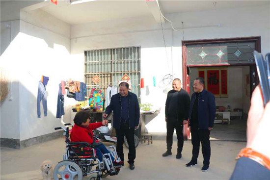 隨后,劉施恩一行前往大許寨鎮(zhèn)張樓村和風(fēng)喜、葛花李村李清城、葛花李村張治業(yè)、君趙村李盼盼等貧困戶家中,每到一處都與貧困群眾親切交流,詢問(wèn)身體狀況、家庭收入及住房情況。在了解到和風(fēng)喜孤身一人支撐家庭,拉扯兩個(gè)孩子上學(xué),生活十分艱難的情況后,曹長(zhǎng)江向其捐贈(zèng)了5000元現(xiàn)金,鼓勵(lì)她要對(duì)生活有信心,相信國(guó)家的扶貧政策和自然資源局的幫扶工作,早日克服暫時(shí)的困難。并向她送去祝福,祝愿她今后的日子越過(guò)越好。