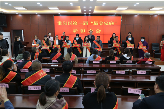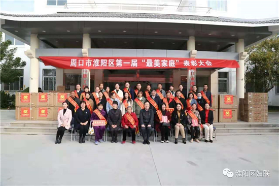 會(huì)議宣讀了《淮陽區(qū)婦聯(lián)關(guān)于表彰第一屆“最美家庭”的決定》;與會(huì)領(lǐng)導(dǎo)為最美家庭進(jìn)行現(xiàn)場(chǎng)頒獎(jiǎng)、頒發(fā)證書和門牌;兩戶“最美家庭”代表分享了家庭故事。