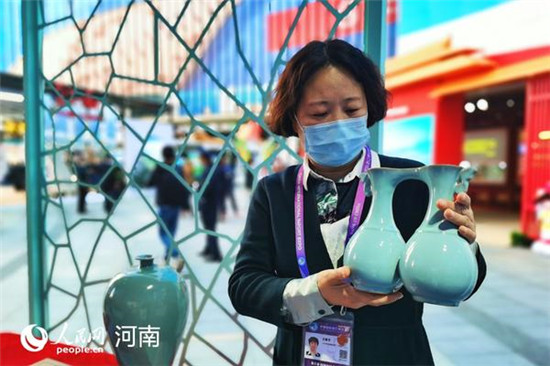 在非遺展示區(qū),河南帶來的汝瓷、絞胎瓷、懷山藥古法炮制技藝,引得客商們駐足關(guān)注。汝瓷燒制技藝代表性傳承人王振芳帶來了200多件展品,希望通過進(jìn)博會(huì),讓世界更了解中國名瓷,河南名瓷。
