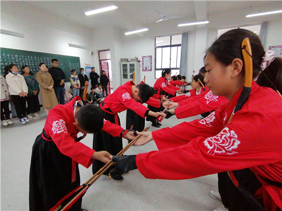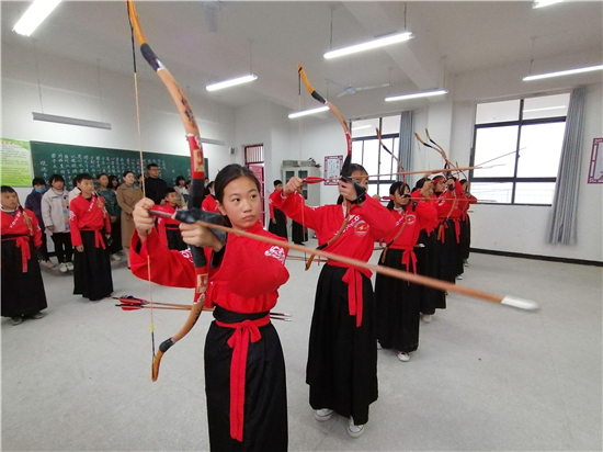 在皮營學(xué)?;顒邮?,學(xué)校舞蹈社團(tuán)的小朋友展示了傳統(tǒng)儀式《鹿鳴》,深情的演繹,展示了他們對國學(xué)經(jīng)典的理解。禮射是禮樂文明重要組成部分,習(xí)射先習(xí)禮,射以觀德。習(xí)射可以強(qiáng)健體魄,其中還蘊(yùn)含了眾多古人先賢的智慧。皮營學(xué)校禮射興趣班的小朋友進(jìn)行禮射表演,隨著挾矢,正筈,審固,舉弓,引彀,發(fā)矢,斂弓,執(zhí)弦等一系列指令,拈弓搭弦展示禮射八法。在這里,學(xué)生們通過不同方式的展示,詮釋自己對“禮”“樂”的理解和認(rèn)知。