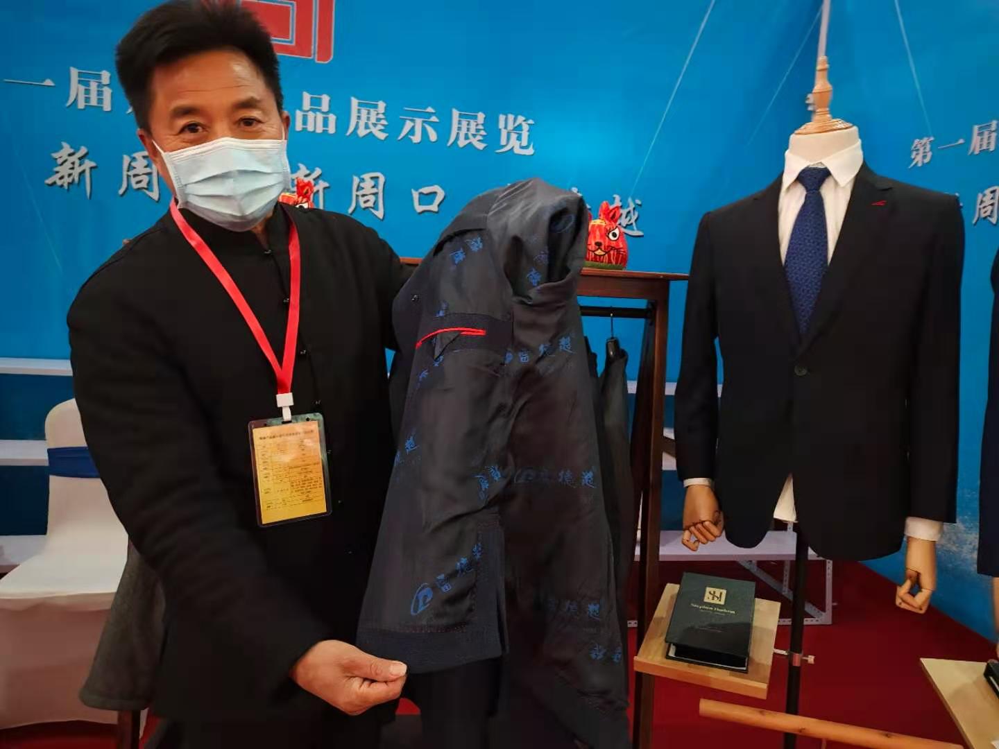 量身定制,做工考究,一件件手工制作的西服讓不少人重新認識服裝的制作過程。在周商大會開幕當(dāng)天,記者見到了淮陽縣第十三屆政協(xié)常委、非物質(zhì)文化遺產(chǎn)淮陽布老虎傳承人、淮陽縣工藝美術(shù)協(xié)會副主席雷智超。本次大會,他不僅帶來了呆萌的布老虎,還帶來了以自己名字命名的手工西服。制作精良的手工西服像極了一件件藝術(shù)品,吸引了不少人咨詢。