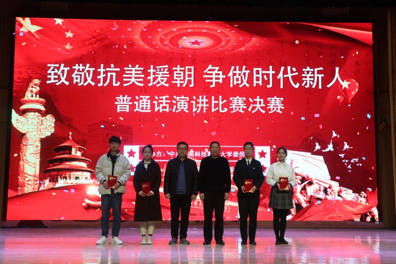 為銘記歷史、緬懷先烈、增強愛國主義精神,培養(yǎng)新時代大學生的責任與擔當意識。12月1日晚,河南科技職業(yè)大學舉辦“致敬抗美援朝,爭做時代新人”普通話演講比賽。