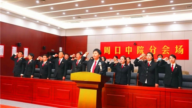 12月4日是第七個國家憲法日。為弘揚憲法精神、維護憲法權(quán)威,當日,川匯區(qū)人和街道辦事處全體班子成員、機關(guān)干部、人大聯(lián)絡(luò)站代表、各社區(qū)“兩委”班子成員90余人在辦事處新時代文明實踐所舉行了憲法宣誓活動。