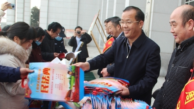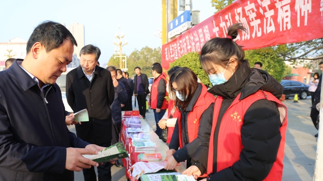 12月3日,在第七個國家憲法日來臨之際,周口市委政法委、周口市法學會、川匯區(qū)法學會,聯(lián)合團體會員單位市博物館、市文物保護中心開展憲法、國家安全、反邪教宣傳活動,讓遵守憲法和法律在全社會成為習慣、成為自覺。周口市委政法委副書記張曉、二級調(diào)研員朱建民參加普法宣傳活動。